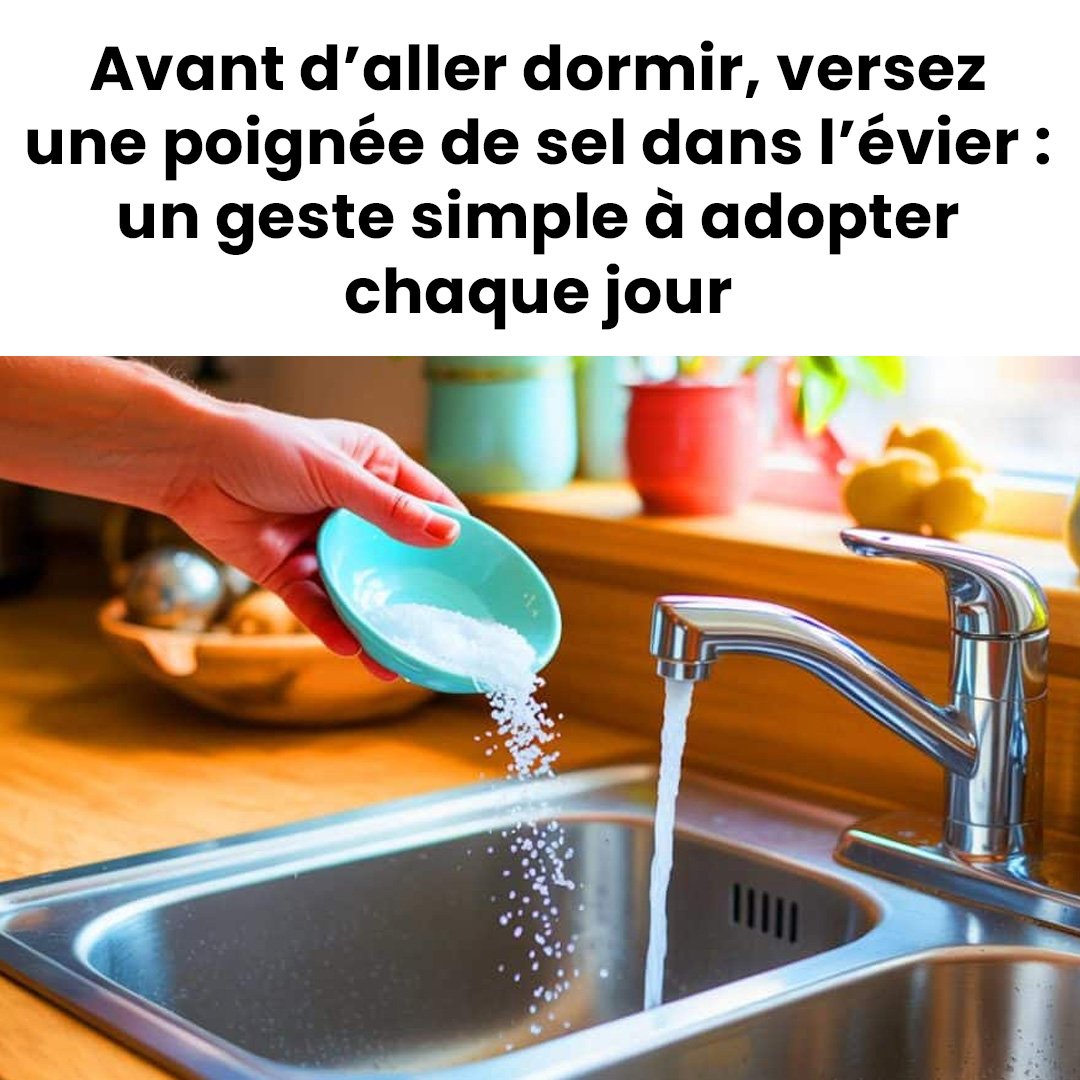 Chaque soir, juste avant d’aller se coucher, versez une poignée de sel dans votre évier. Pourquoi ? Parce que le sel agit comme un nettoyant naturel très efficace. Il aide à dissoudre les graisses, à prévenir les bouchons et surtout, à neutraliser les odeurs persistantes. Pour renforcer l’effet, ajoutez un filet d’eau chaude : votre évier vous remerciera !