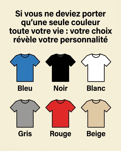 Si vous deviez porter une seule couleur toute votre vie, laquelle choisiriez-vous ? Derrière ce choix en apparence anodin se cachent souvent votre personnalité, vos valeurs et votre façon de voir la vie.